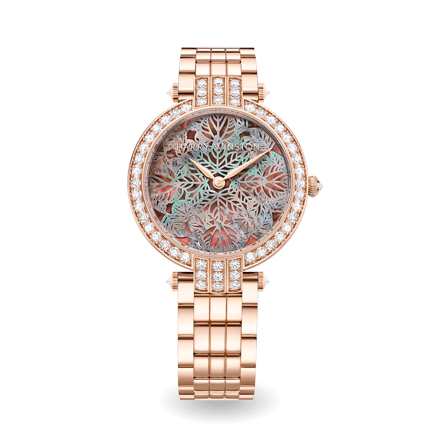 Faithful to Mr. Winston’s ability to extract beauty from nature’s bounties, the Premier Pearly Lace Automatic 36mm features feminine lacework designs floating on a sea of iridescent mother of pearl.
