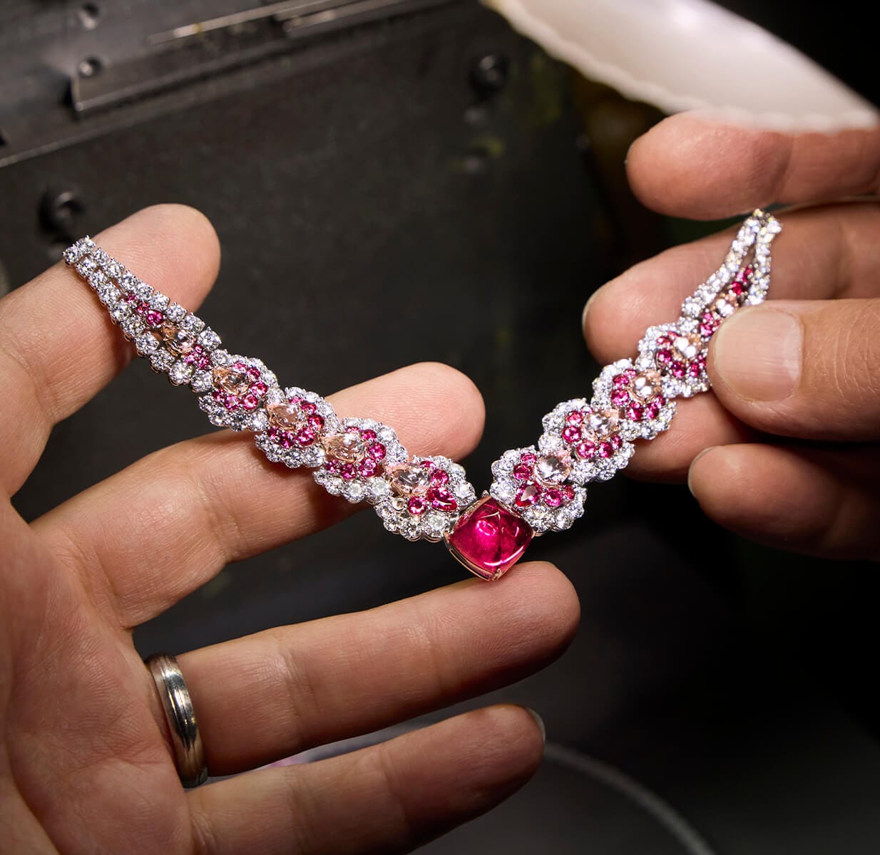 Through a combination of rubellites, morganites, topaz, and diamonds, the Seville Suite reflects the city’s endless beauty, from its sunlit streets to its architectural wonders.
