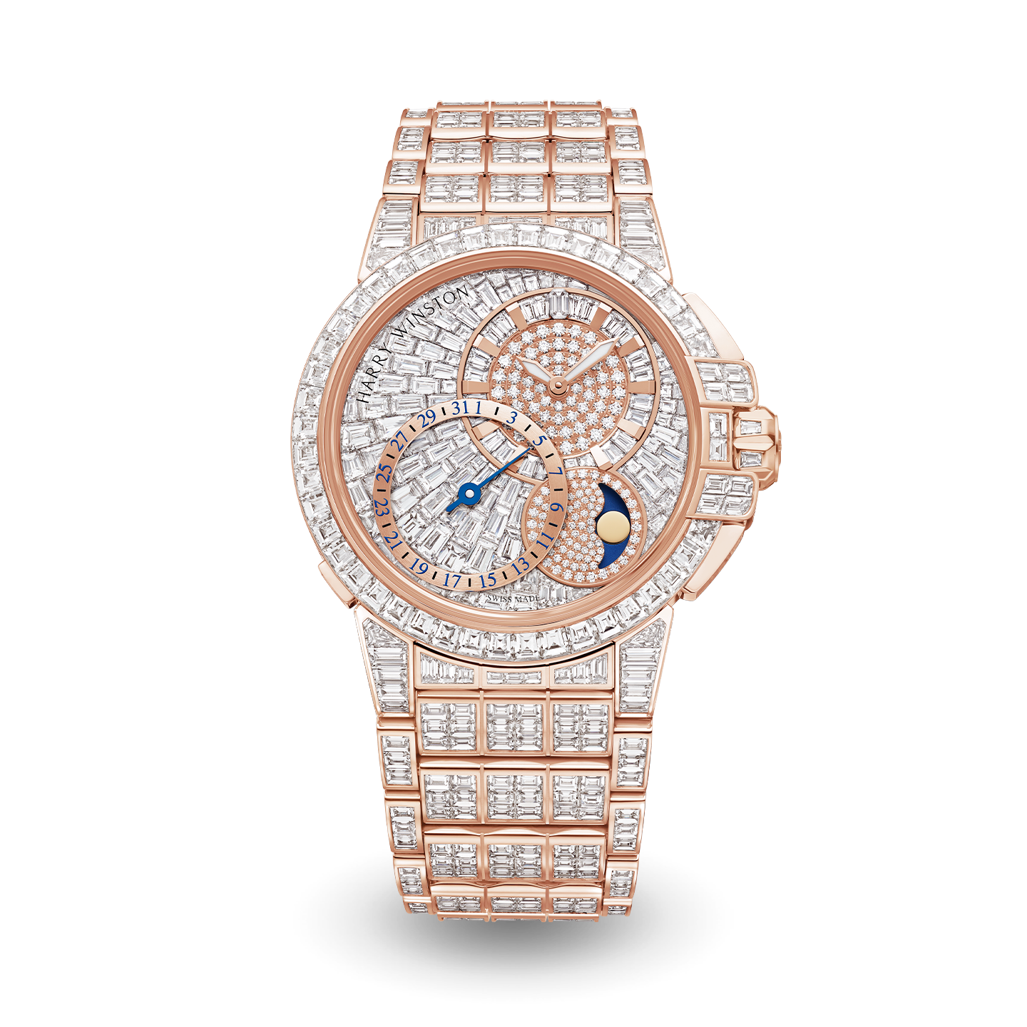 The House of Harry Winston unveils a stunning high jewelry version of its Ocean Date Moon Phase adorned with 38 carats of the most exquisite diamonds. A divine marriage of high jewelry and high-end watchmaking, the limited-edition Ocean navigates the seas of time with resplendent beauty and superlative precision.