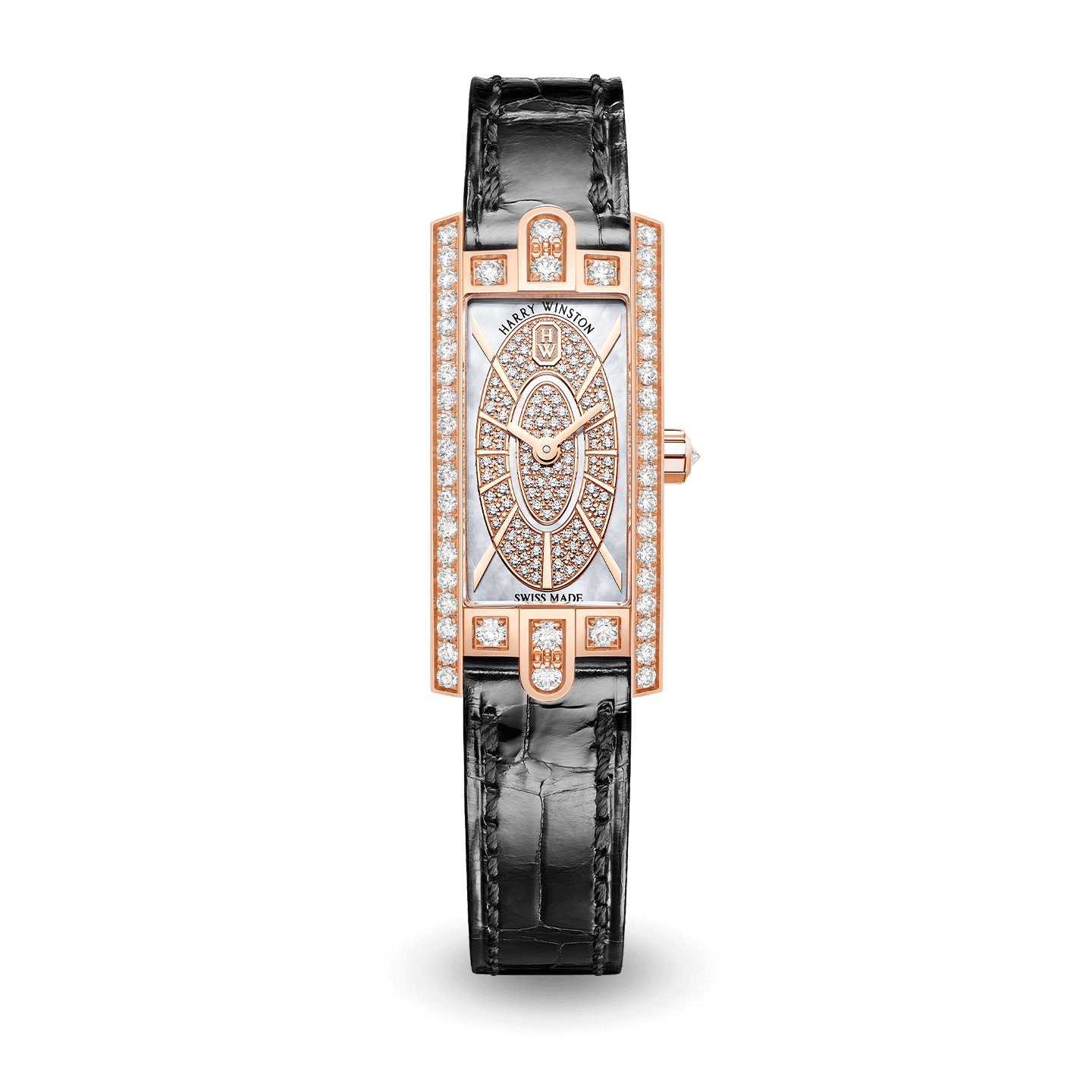 Adorned with an elliptical shape set with scintillating diamonds, the dial of the Avenue C Mini draws attention. Housed in a complimentary and elegant 18K gold case, this creation is absolutely feminine.