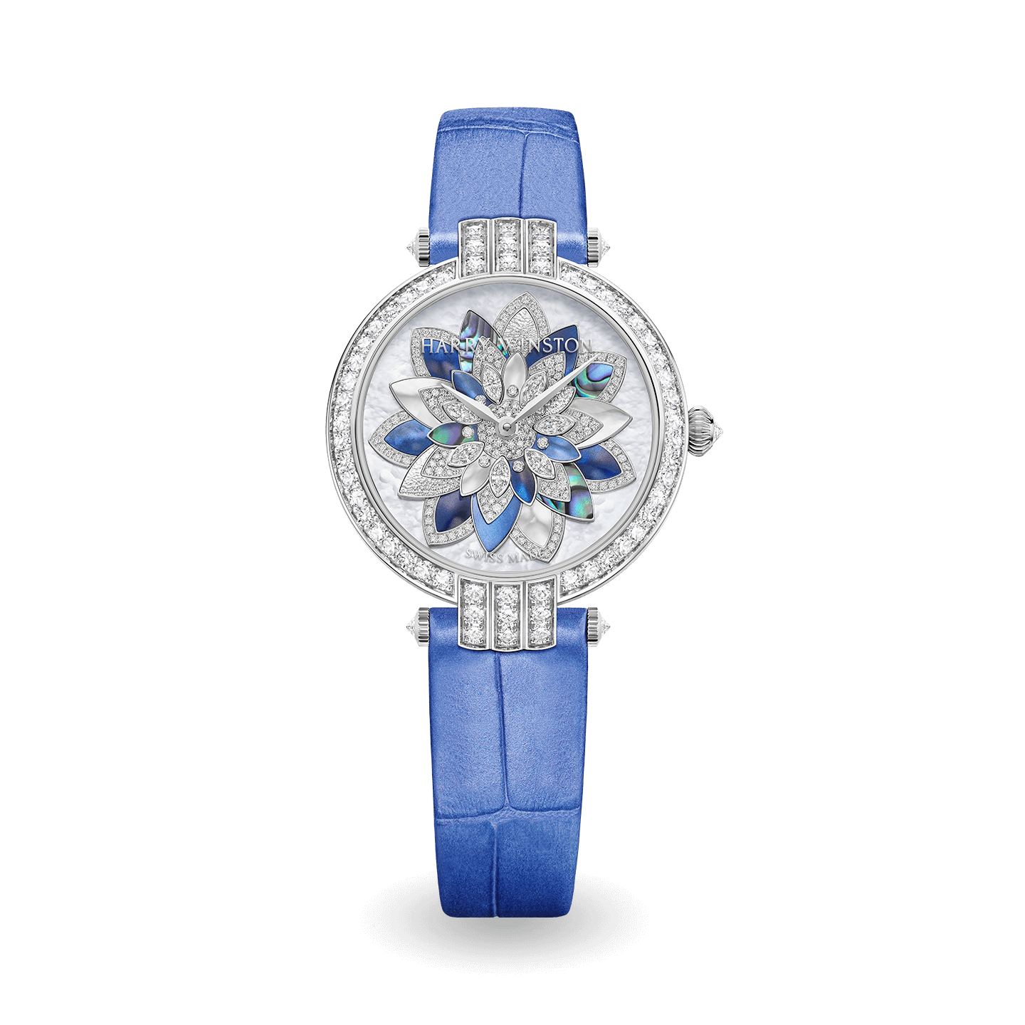 Harry Winston Premier Lotus Automatic 31mm features a dynamic floral sculpture rising from the pearly waters of the dial. Recalling different chapters in the scintillating history of the House of Harry Winston, the majestic petals of the lotus flower dazzle with their color, light and volume.