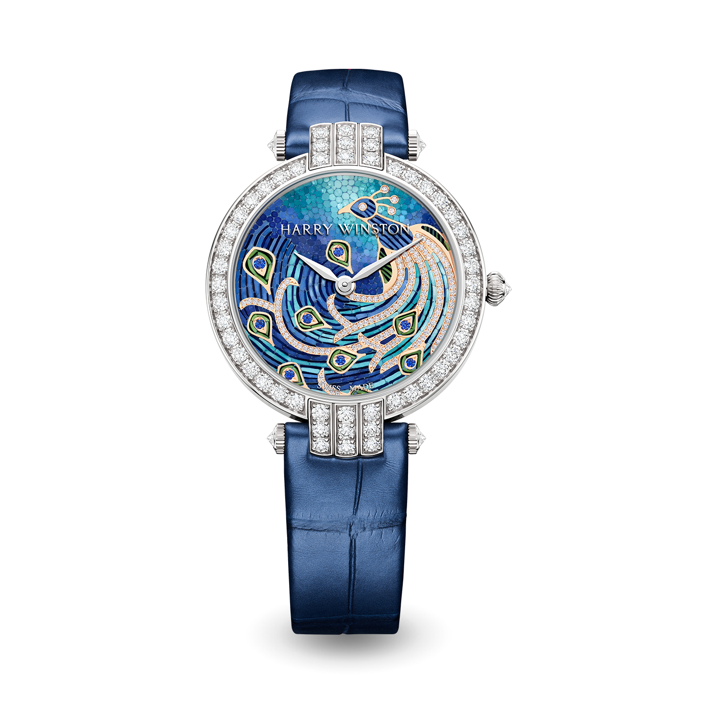 Nature has always been a source of inspiration at the House of Harry Winston. The millenary art of glass micromosaic is behind the captivating dials of the Premier Precious Peacock, a much-loved bird in Harry Winston’s history of high jewelry design.