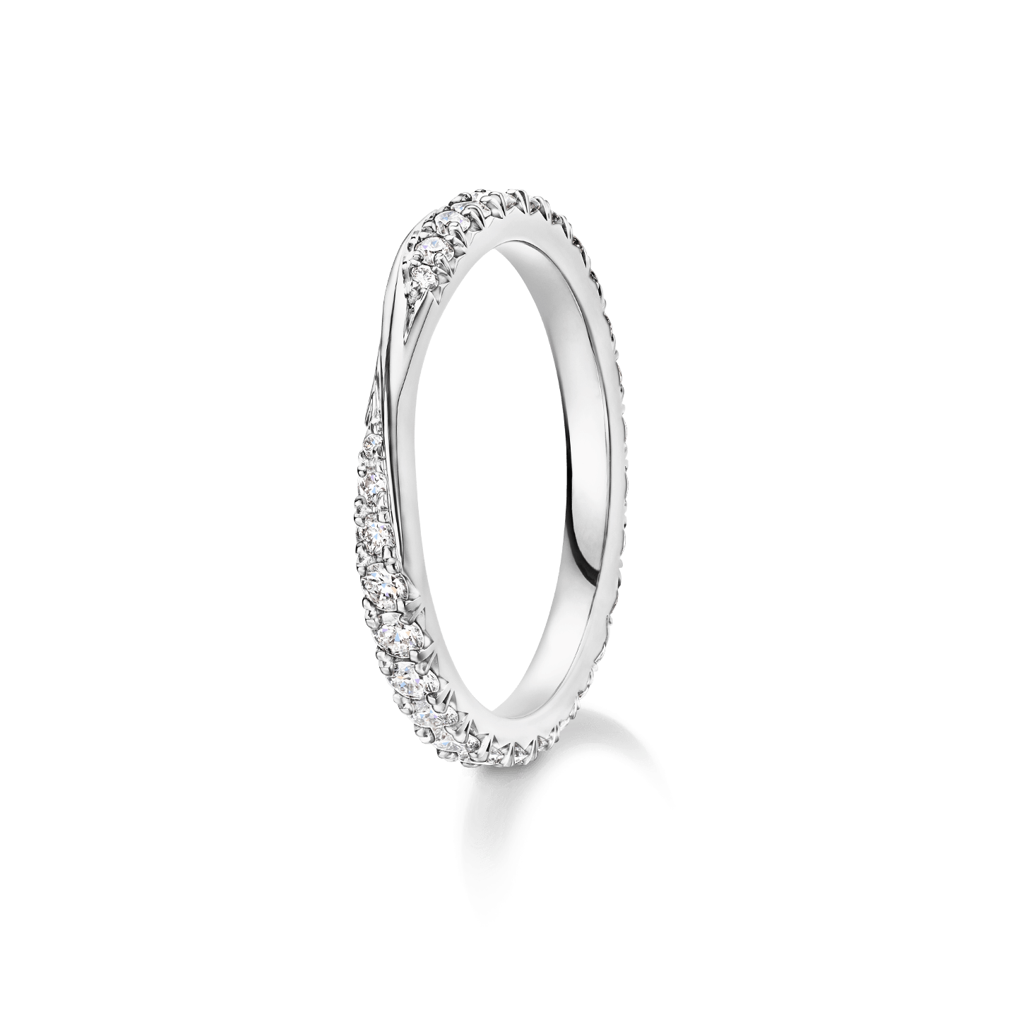 Seal one of life’s greatest promises in a delicate wedding ring designed to shine as bright as your brilliant love. Harry Winston presents the Brilliant Love Wedding Band, carefully crafted to embrace the curves and contours of its other half, the complementary engagement ring. Mirroring the House’s feminine yet sleek Brilliant Love Engagement Ring, the round brilliant diamonds in this refined design are artfully arranged in a delicate cut-down setting, free of heavy metal edges. By showcasing each stone’s magnificent angular cuts, this diamond wedding band reflects light with the utmost fire, and pairs perfectly with its eternal companion.