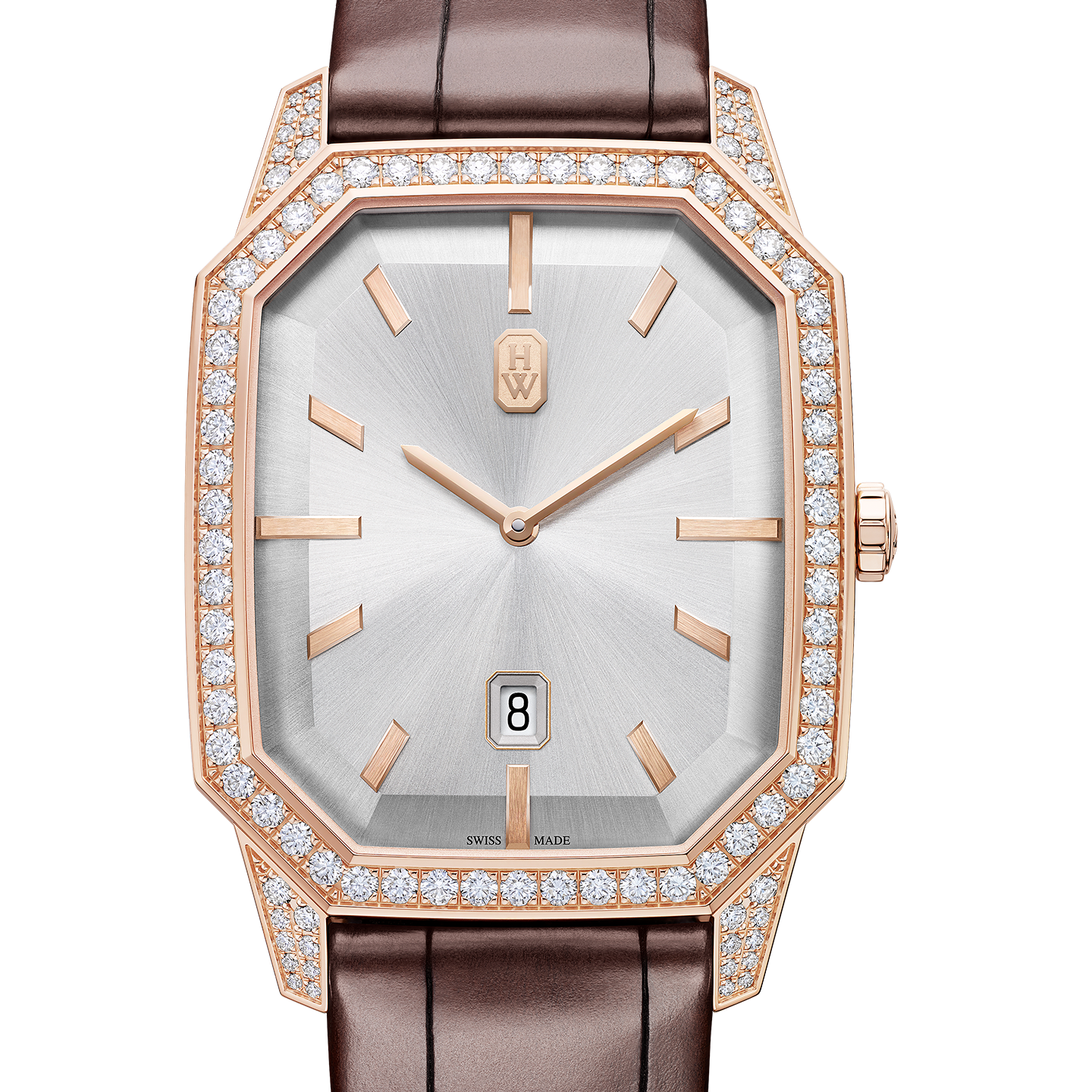Harry Winston expands the elegant Emerald collection with the incorporation of larger timepieces. More architectural, the 33mm model highlights dynamic beveled details.