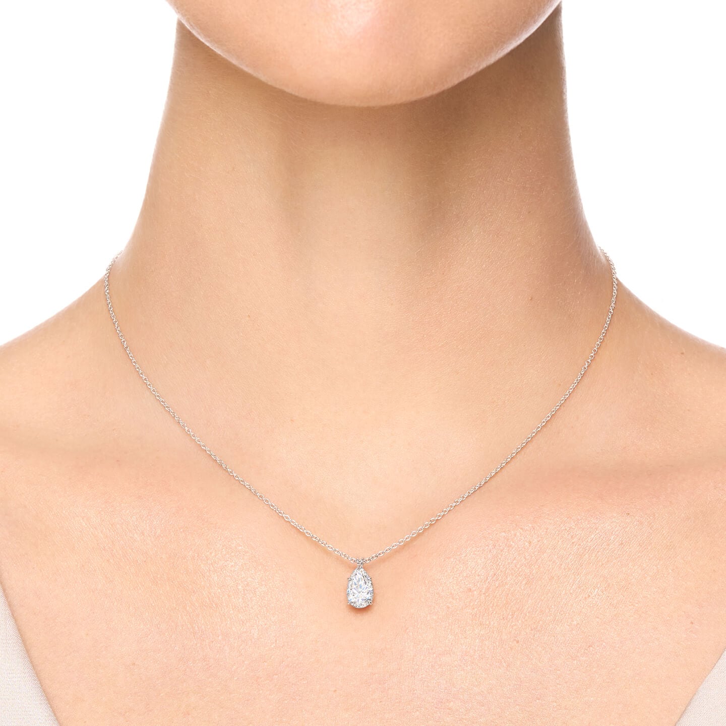 Available with one pear-shaped diamond starting from 0.50 carats, set in platinum.
