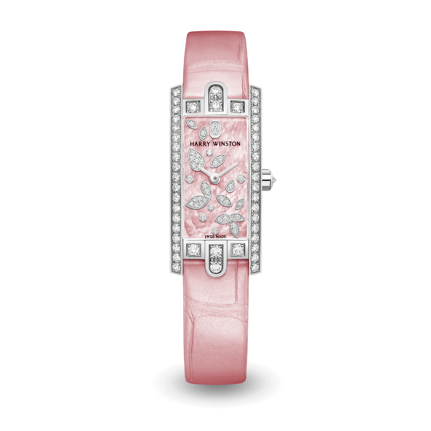 By uniting two celebrated emblems, the Avenue C Mini Lily Cluster Pink perfectly embodies the enduring design spirit of the House. Revisiting the hallmark cluster motif in a more contemporary fashion, the Avenue C Mini Lily Cluster Pink timepiece, with its dreamy aura, celebrates the beauty of the lily in an Avenue case straight from the heart of New York.