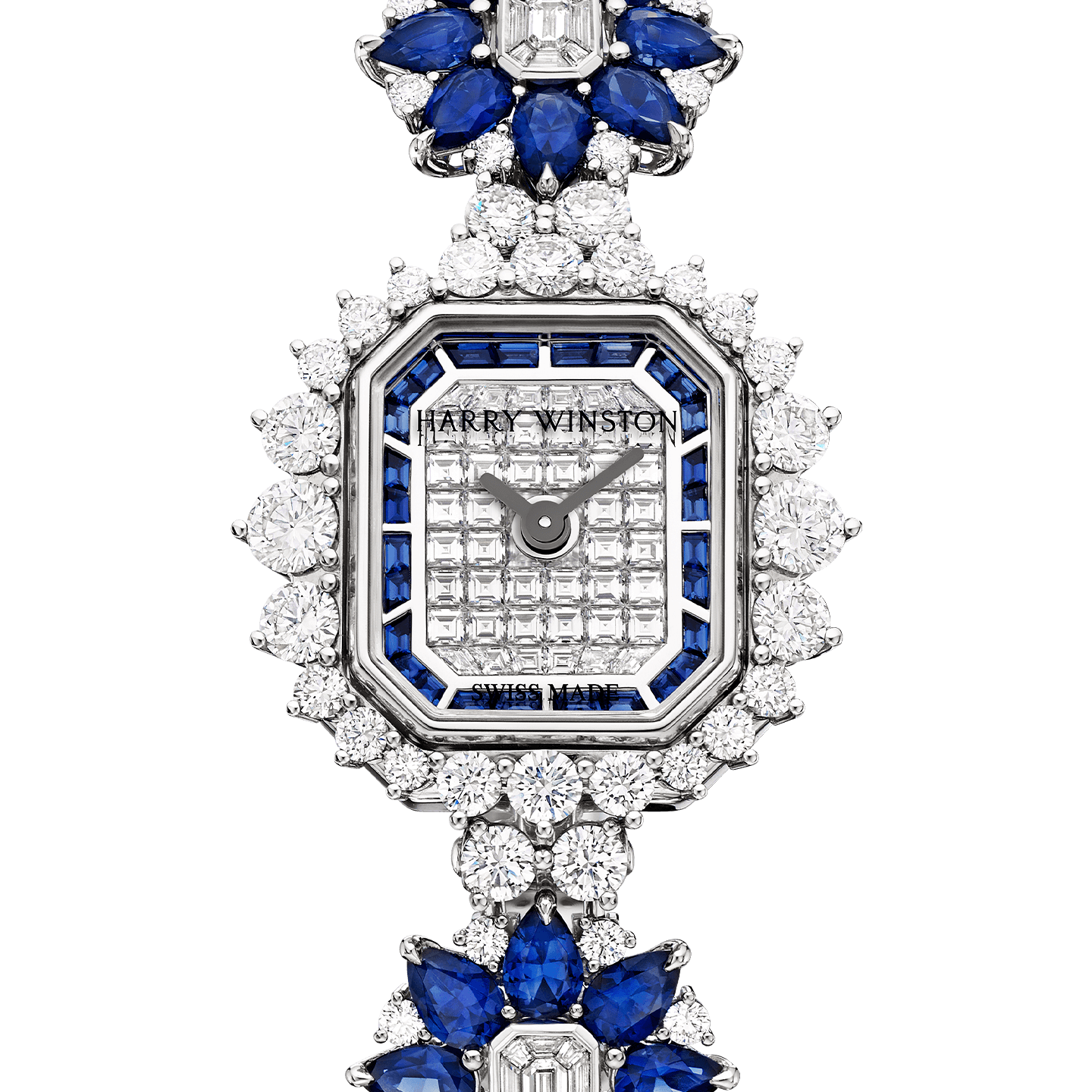 The glittering world of Harry Winston continues to shine with the introduction of the Marble Marquetry by Harry Winston. Crafted in platinum and meticulously set with vibrant blue sapphires and diamonds, the timepiece takes its design cues from the star-shaped pattern of the marble floor leading to the heart of Harry Winston’s New York Flagship Salon.