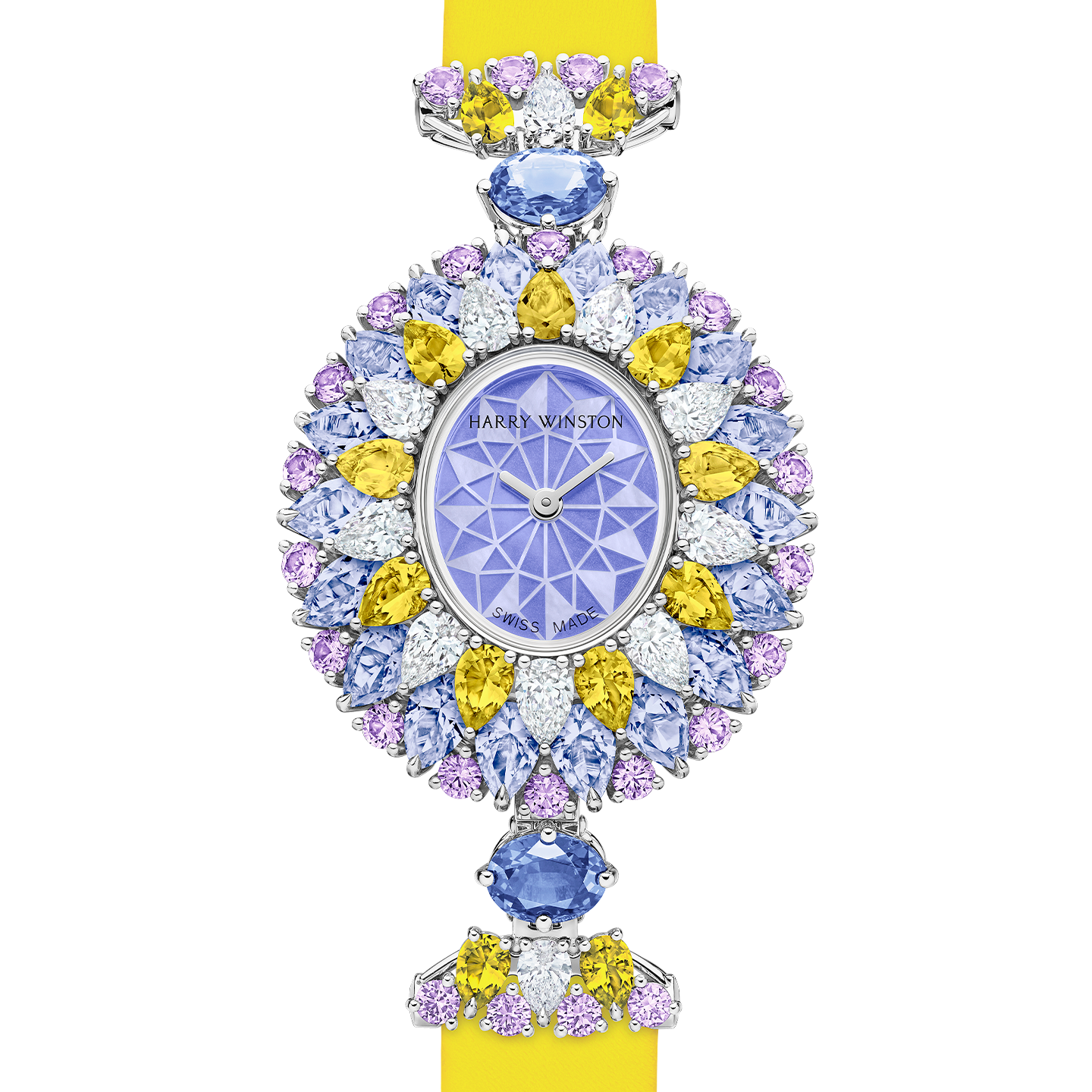Inspired by the bright candy-colored gemstones that define the House’s Winston Candy cocktail rings, the delectable platinum Winston Candy High Jewelry Watch offers a sweet way to savor time. Incorporating the knockout glamour and intense color of the rings, this timepiece is the most delectable treat to adorn the wrist.