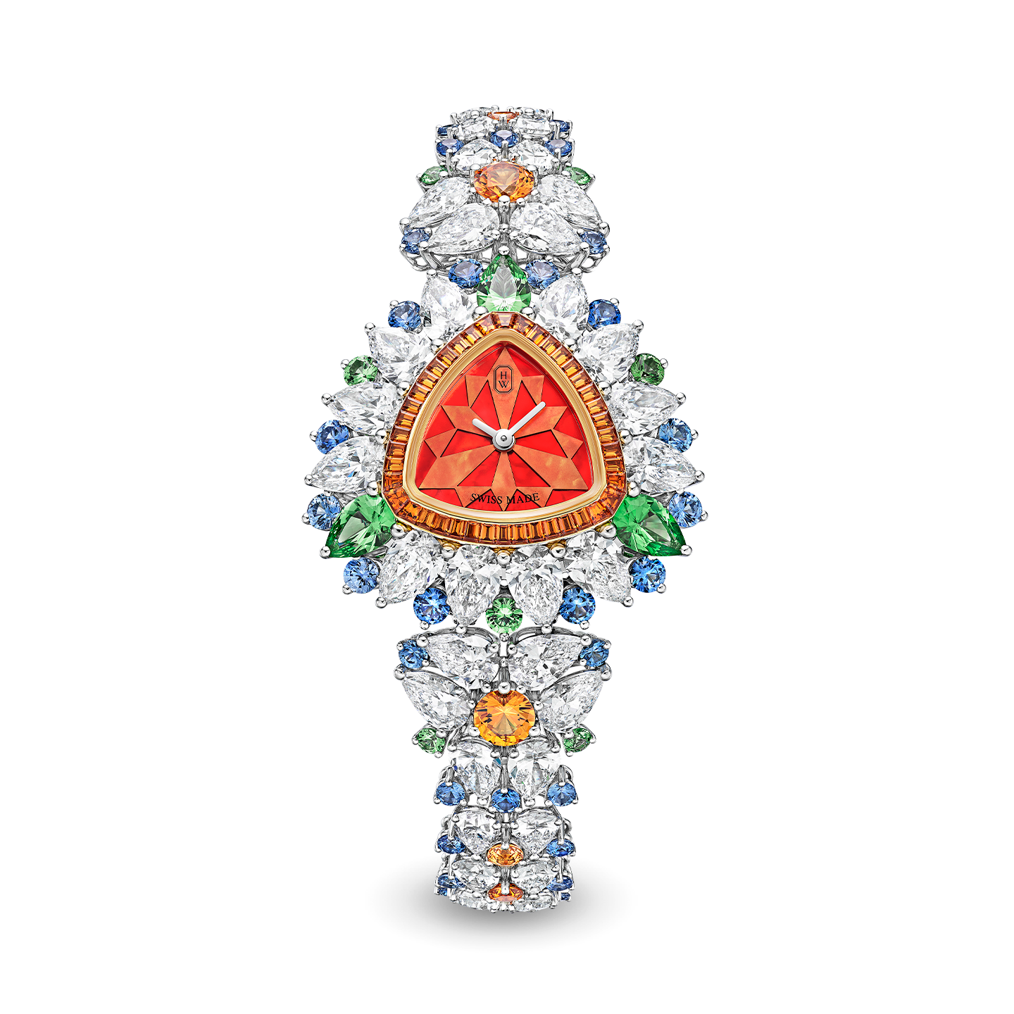 Inspired by the bright candy-colored gemstones that define the House’s Winston Candy cocktail rings, the delectable platinum Winston Candy High Jewelry Watch offers a sweet way to savor time. Incorporating the knockout glamour and intense color of the rings, this timepiece is the most delectable treat to adorn the wrist.