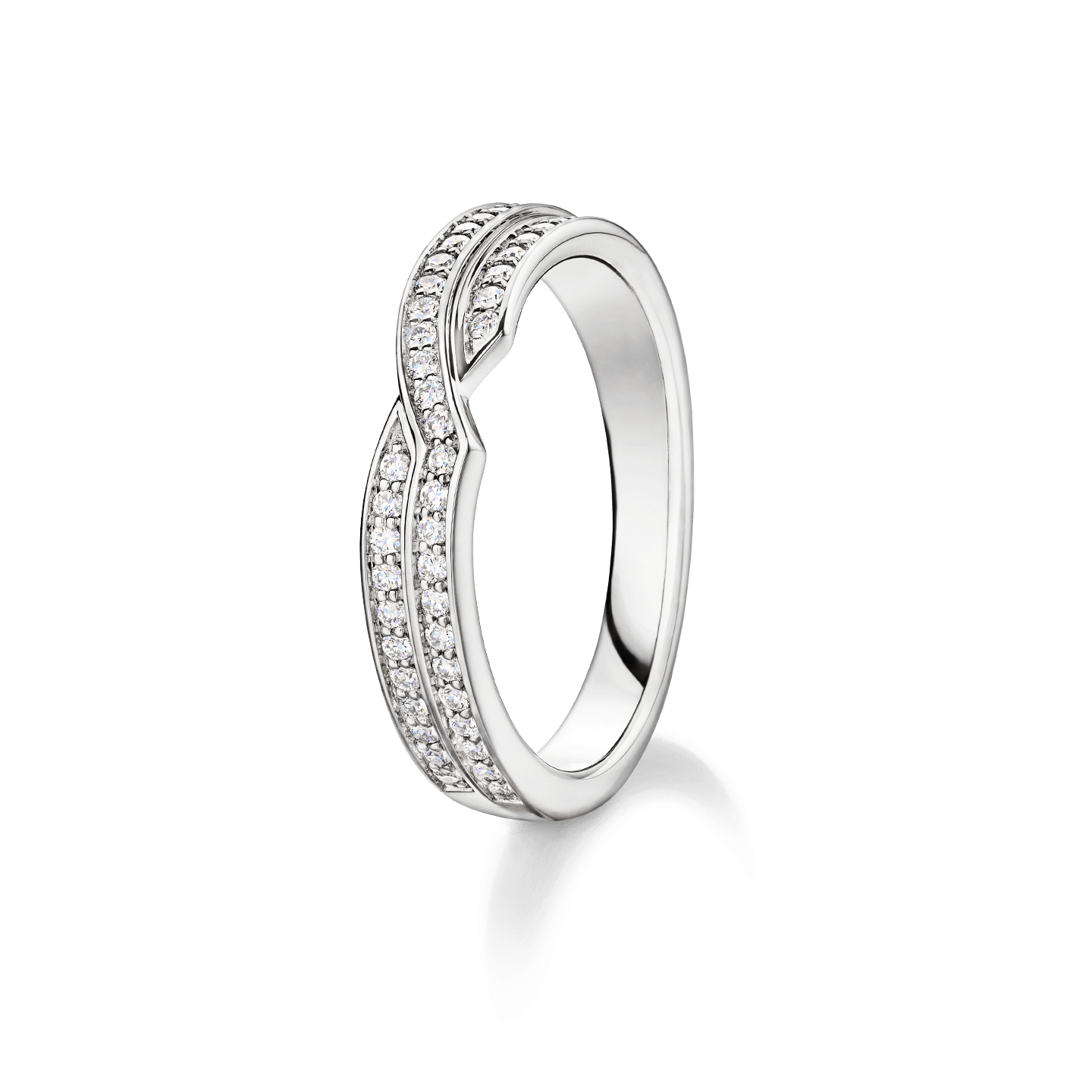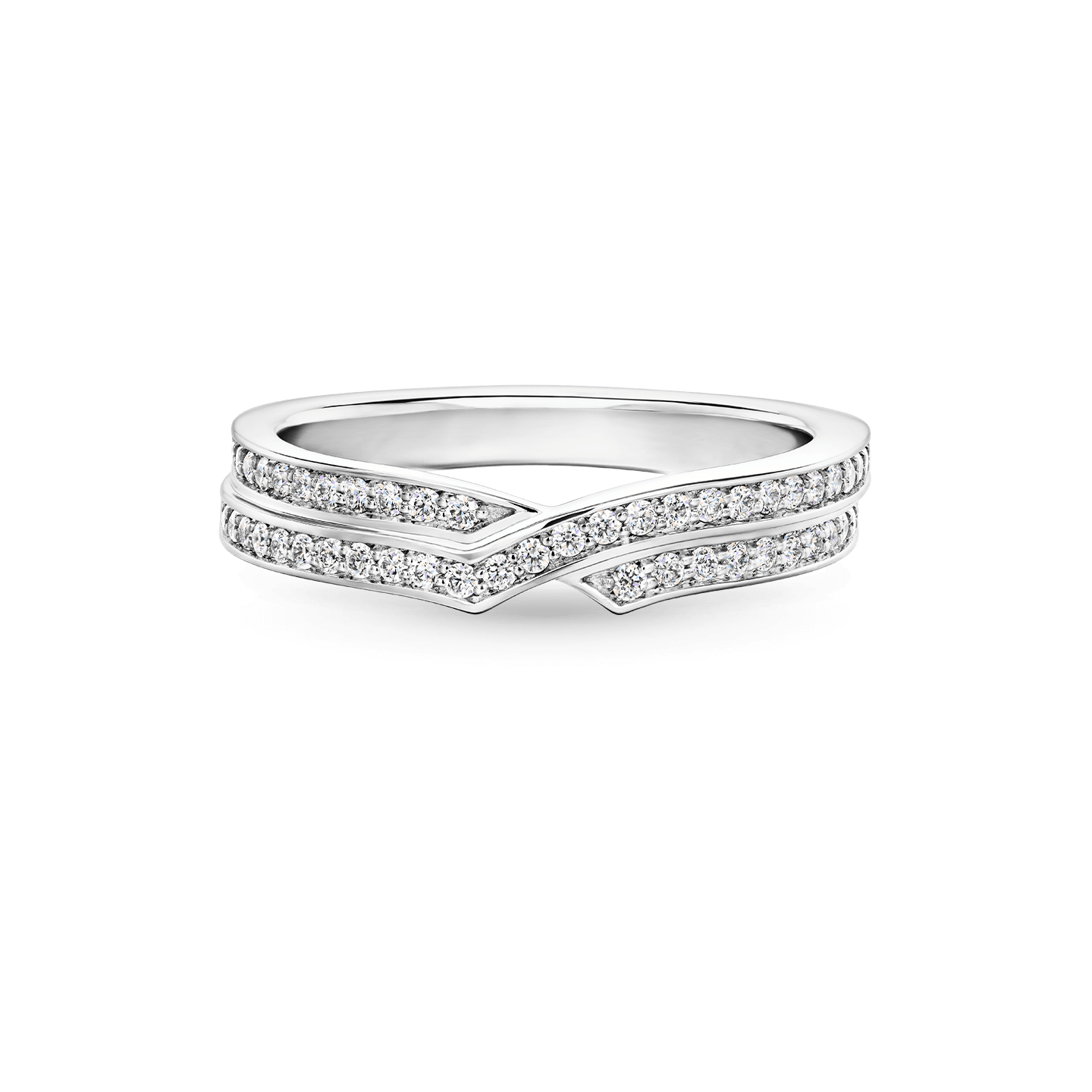 The Tryst Two Row Pave Diamond Wedding Band blends classic craftsmanship with contemporary design. This diamond wedding band uniquely embraces the curves and contours of a diamond center stone. The perfect complement to a Harry Winston diamond engagement ring, the Tryst Two Row Pave Diamond Wedding Band is both feminine and distinctive. This fine jewelry design can also be worn as a stackable fashion ring, for the ultimate statement in personal style.