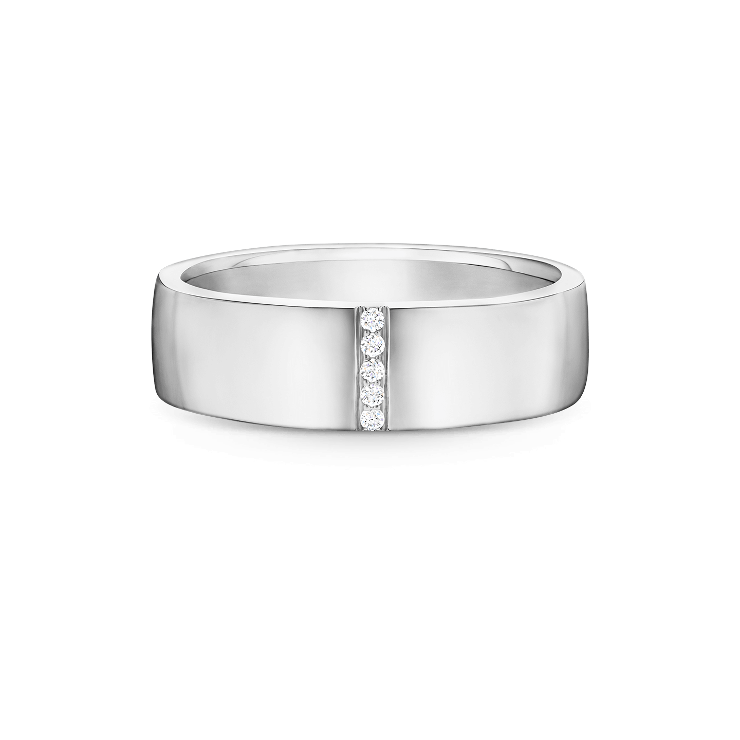 5 round brilliant diamonds weighing a total of approximately 0.04 carats, set in platinum.
