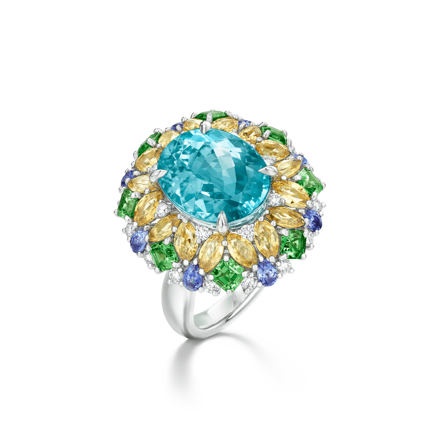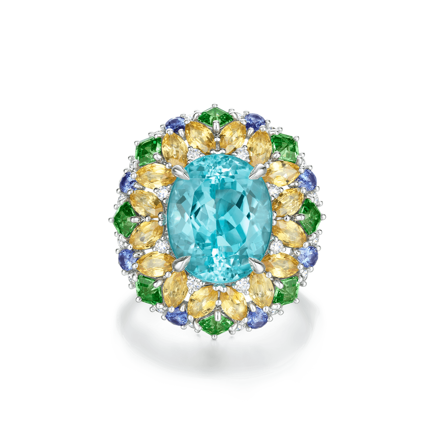 Winston Candy Paraiba Tourmaline Ring with Sapphires, Yellow Sapphires, Tsavorite Garnets, and Diamonds