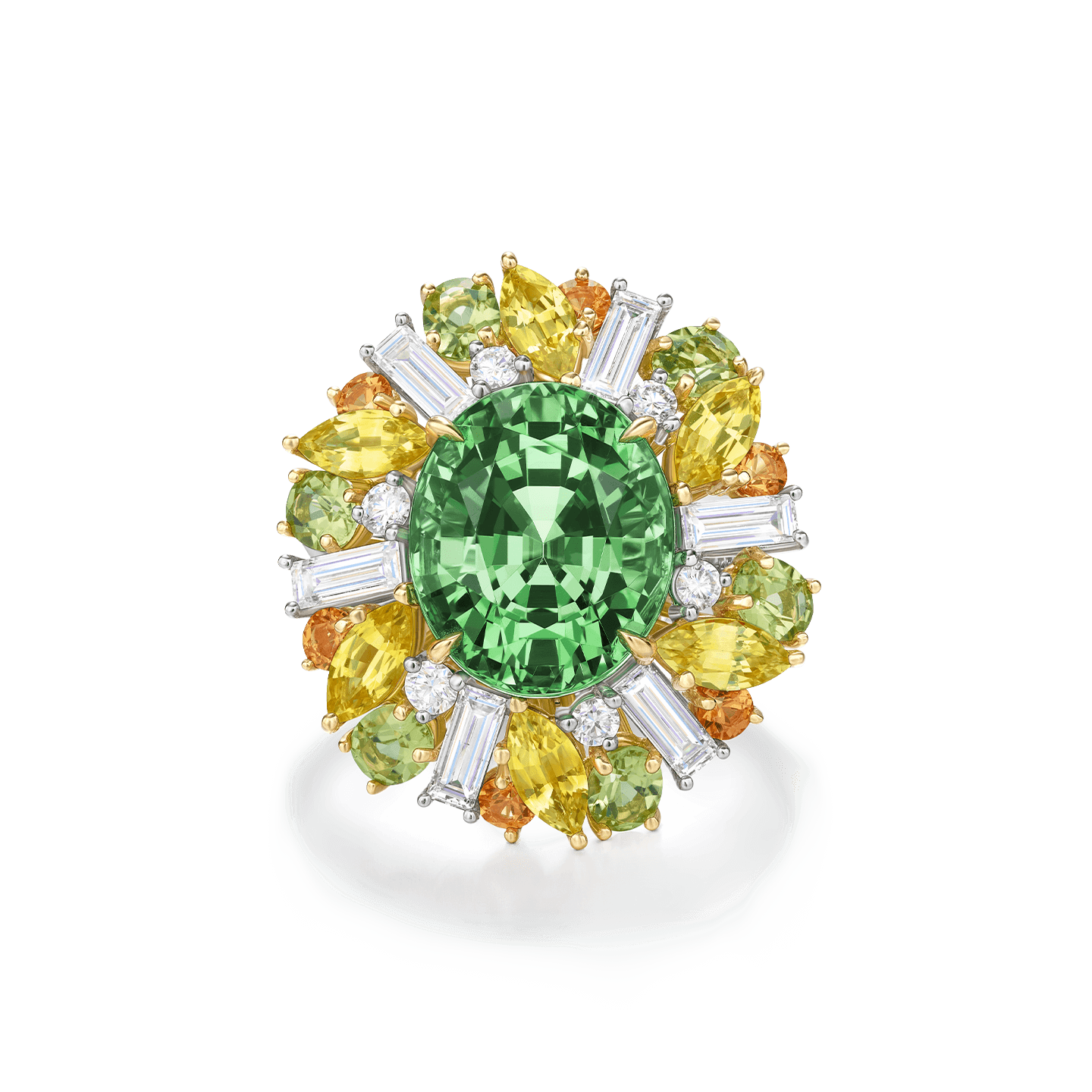 Winston Candy Tsavorite Ring with Yellow Sapphires, Peridots, Spessartites, and Diamonds